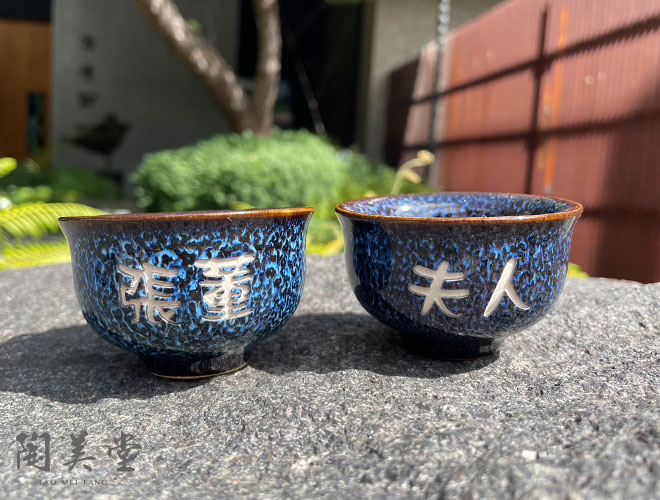 鈞窯飲茶刻字杯-藏青藍-約Φ6.8 x 高4.5cm